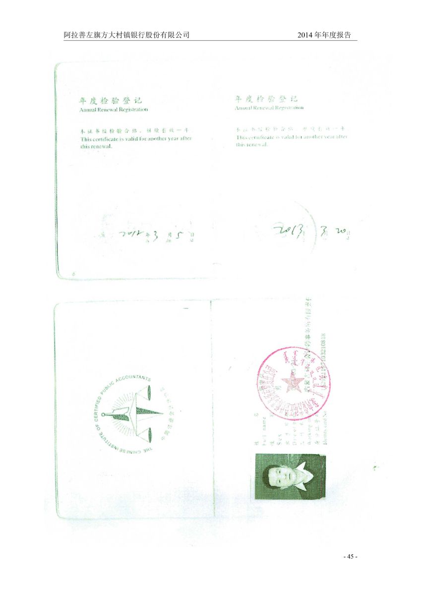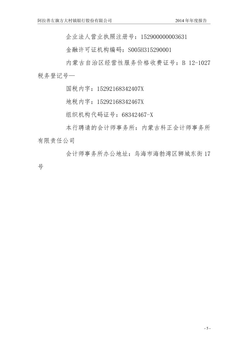 阿拉善左旗方大村镇银行股份有限公司2014年年度报告